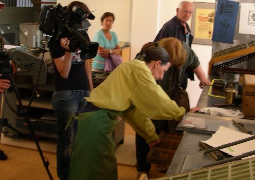 Showing letterpress printing at the city museum of Schorndorf, the birth place of Gottlieb Daimler, who invented the automobile.