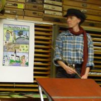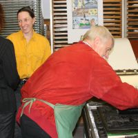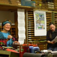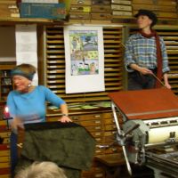 Many a guest took the opportunity to have his or her try on the proofing press printig the street ballad poster.