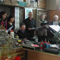 Many many thanks to everybody who helped! To Ursula Groh who came with her barrel organ and sang the street ballad to us, to “Soul-to-Swing”, who arranged the song for being performed by 8 voices and gave us a wonderful show - including a couple of classics from their repertoire. To Sigi who couldn’t come in the end but who was with us in his thoughts - we are convinced. And to my husband who inspite of a rather mean cold & cough kept taking fotos of the whole scene.
