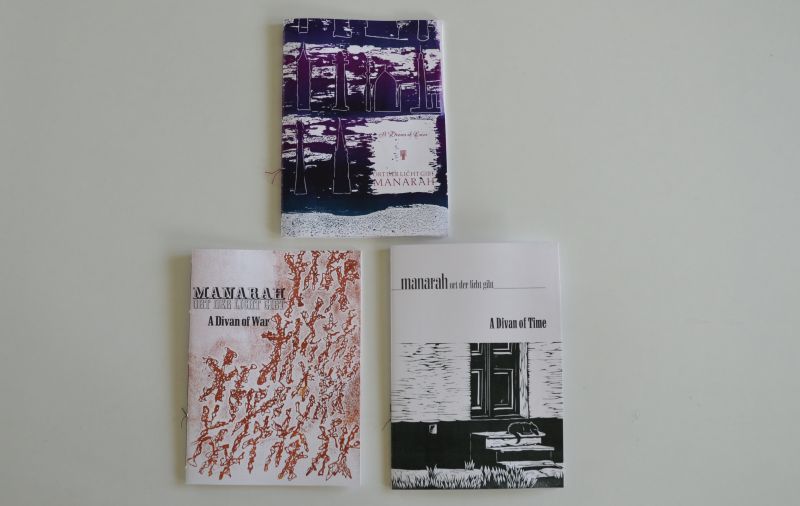 “Manarah” ia an arabic word for lighthouse or in general a place shedding light. It later developed into “minaret”. “Divan” is a Persian word and means a collection of poetry.