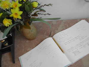 Acoustic Blues Duo with Harald Goldhahn and Be Vandy have brought in their blues music and left it here. Many people have come looking around and enjoying the beautiful pottery of Bettina Kunzmann and the lovely arranged flowers of Grit Michauk. And the visitor’s book patiently waits for all the others to come. Welcome!