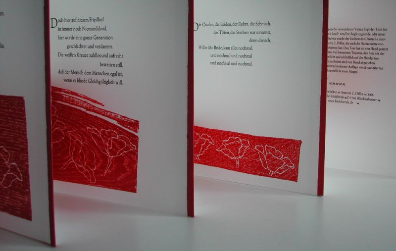 Text from the lyrics of the song „No Man‘s Land“ by Eric Bogle - Text in German by Annette C. Disslin, English lyrics available as handout on request or from the Eric Bogle website.