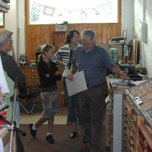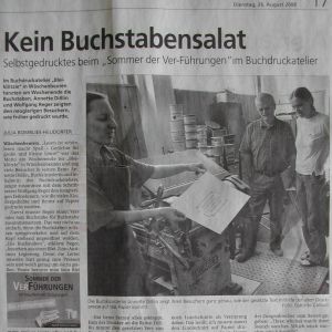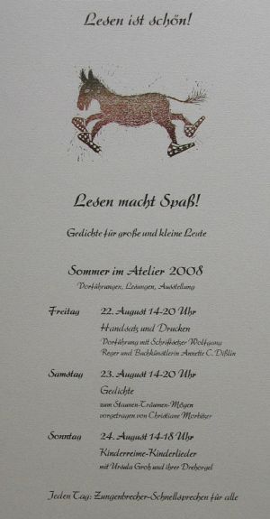 Wolfgang Reger came from his home town Heilbronn to show how working with metal type is done properly. He told from his daily duties while working at a printing office before he retired comosing all these wedding cards and advertisements for being printed letter press.