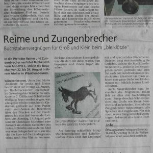 Saturday 23 August 14 bis 20: Christiane Morbitzer reading poems