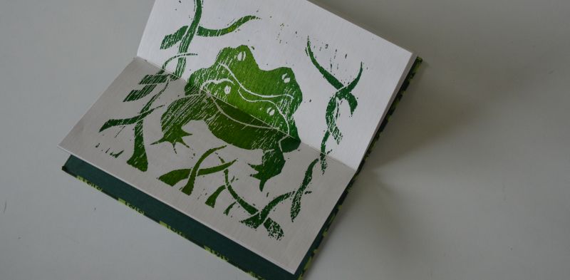 Woodcut illustration within the text, a second woodcut printed on the cover, set by hand in Memphis and Akzidenz Grotesk. 24 pp, 11 by 21 cm (4,3 by 8,3 inch). Text in German.