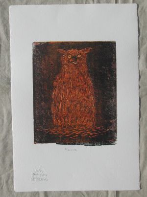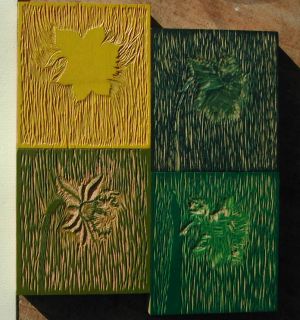Apart from prints with one colour only multicolour prints can be made. Each colour wants its own plate. Thus a 5 colour print needs 5 plates or blocks. The artist can cut 5 blocks that are printed one after the other. Alternatively the artist can have one block of wood or lino that is cut successively each stadium fitting to print one single colour. Thus the block is cut to print the first colour and after all required copies have been printed, the same block is cut to print the second colour and so forth. Once the block has been cut for the 5th colour the original block doesn’t exist anymore, it is “lost”.